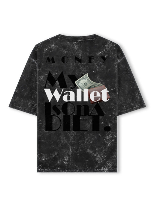 Acid Wash Baggy Tee – “My Wallet Is on a Diet”